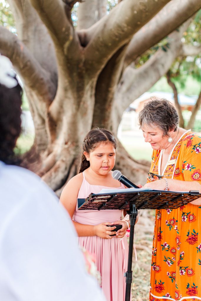 The ceremony was a real tear-jerker. Held in the Mary Brand Park in Moree, celebrant Nicole Fitzgerald had the guests both laughing and crying by the telling of bride and groom’s unlikely love story. The rings were warmed in the hands of Warren’s mother and attending family released helium balloons in remembrance of deceased loved ones.