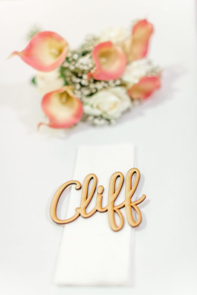 Gina and Warren delighted their guests by commencing the reception with a first dance. The reception was held at the Moree RSL club and had been beautifully decorated by family. Lovely, carved timber place-holders with the names of Gina’s late mother and father and Warren’s late father had their own places at the bridal table.