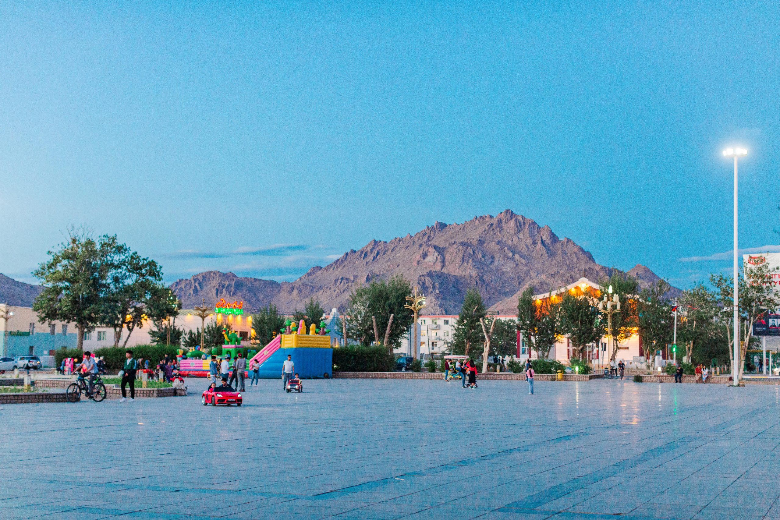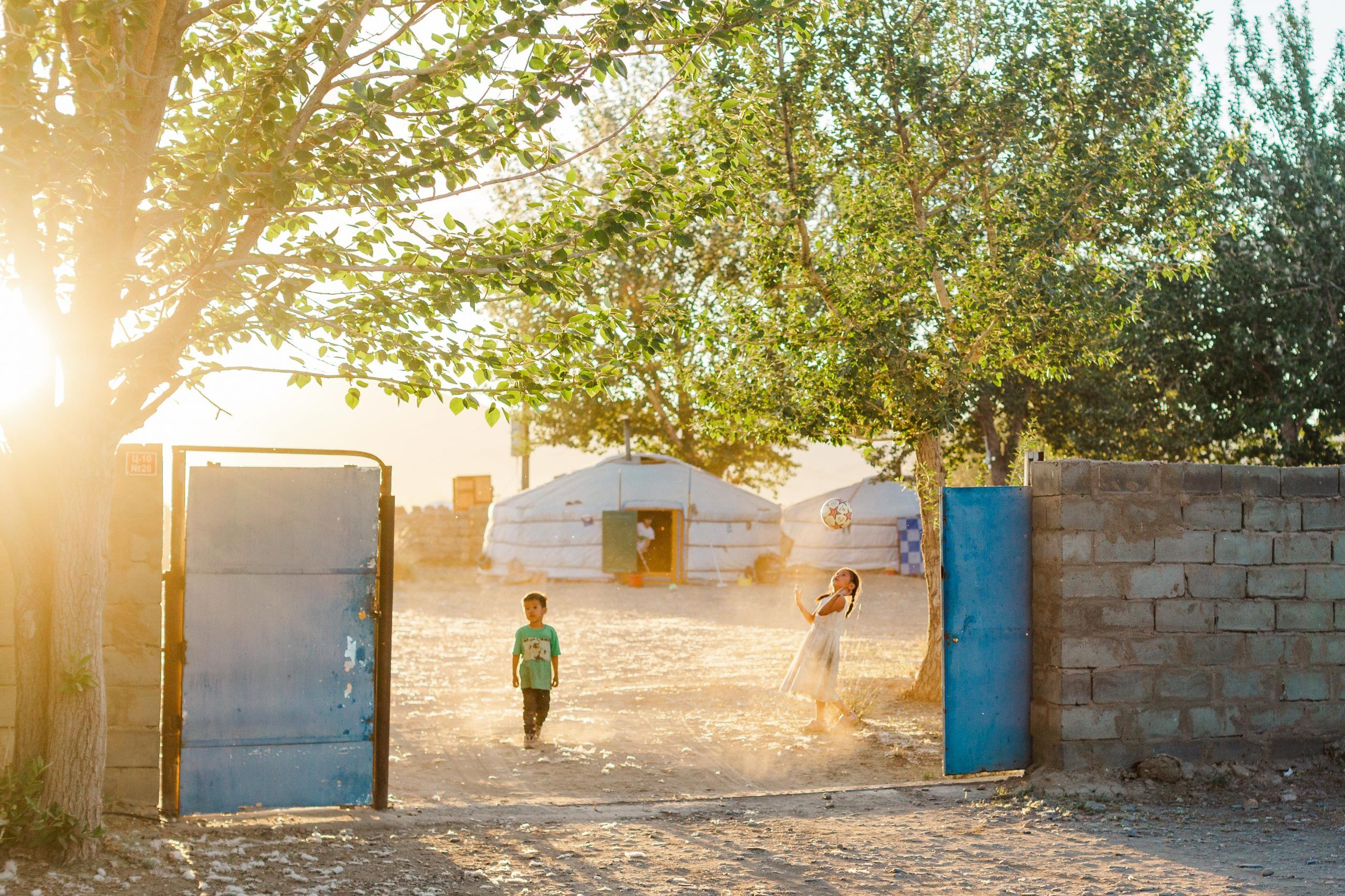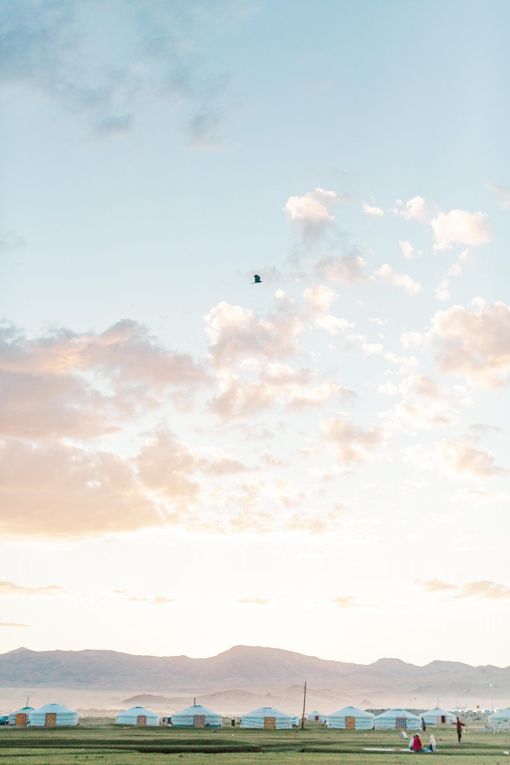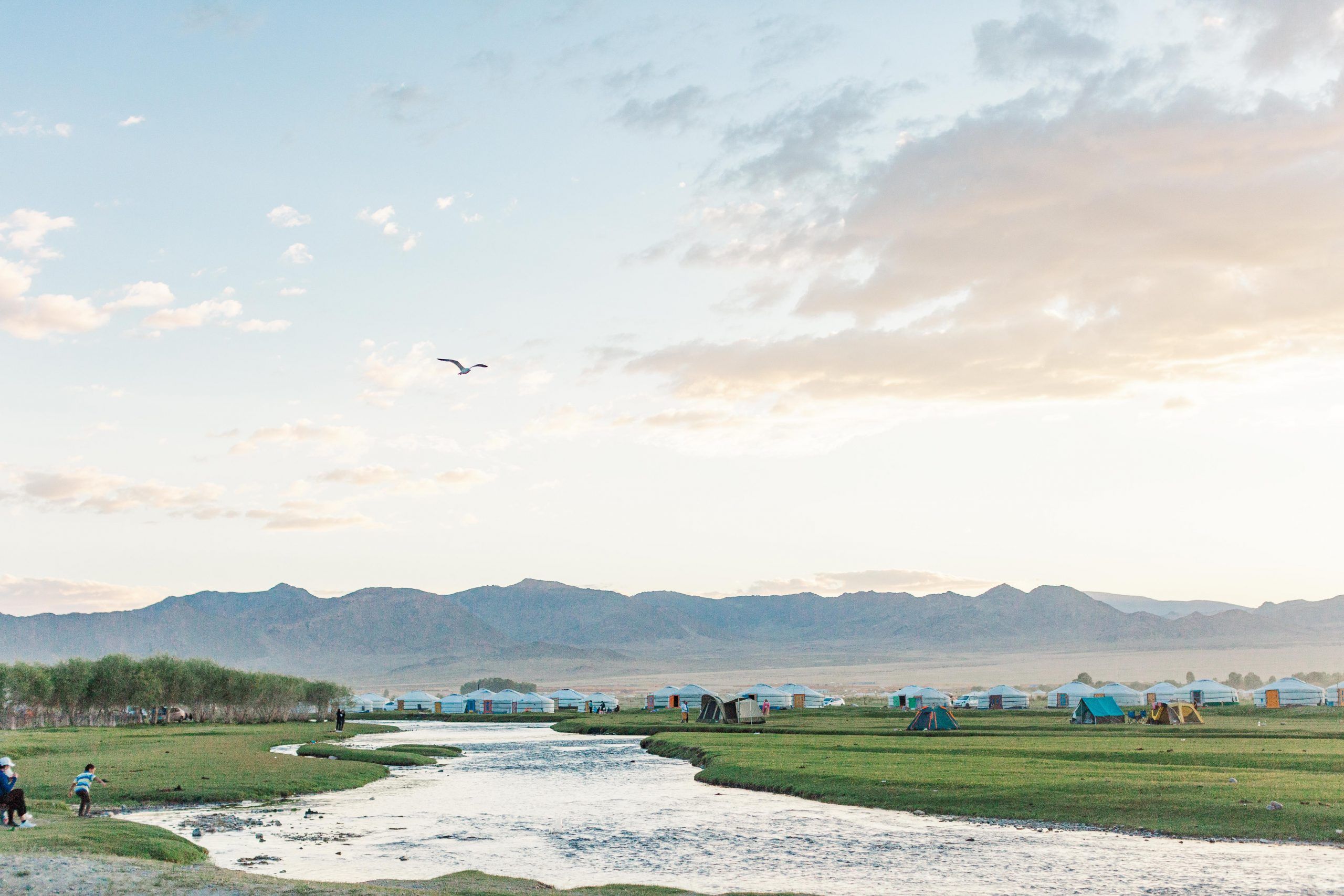I eagerly take in the scenery now. The houses disappear. A small fenced area. A cluster of yurts. But where are the trees?