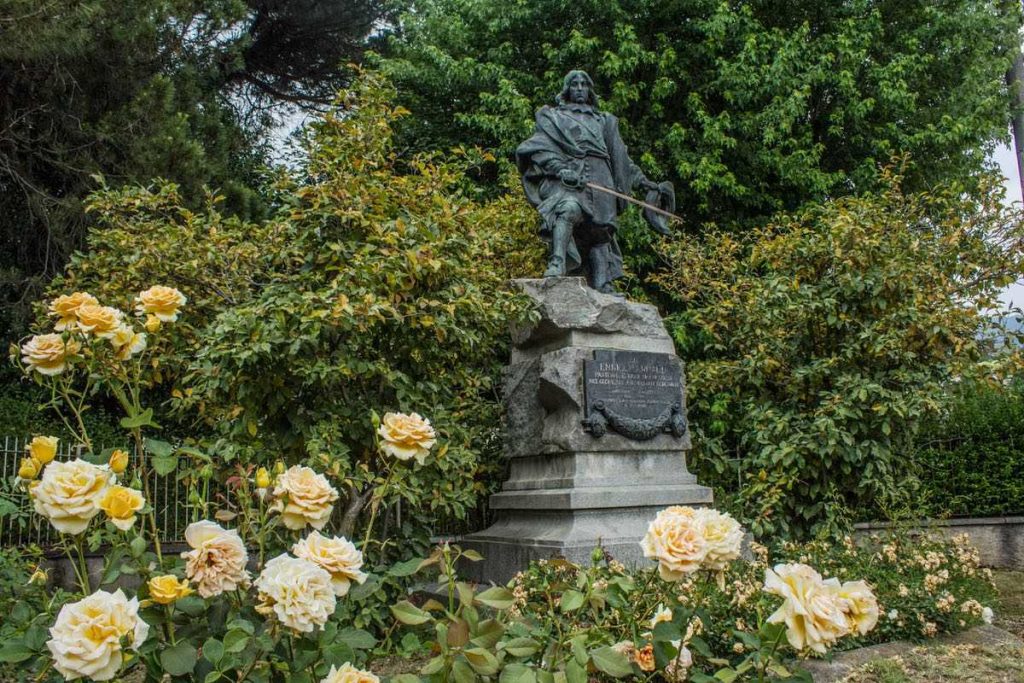 I muse, then smile on my return trek from the summit. The uniquely Alpine, slate roofs certainly look strong enough to weather many a snow storm. My pace quickens at the sight of yet another water fountain – ever flowing with fresh streams from underground springs. They are everywhere in this valley. I grin in recognition of the names of the streets, immortalizing yesteryear’s great ones. I hadn’t expected to bump into the hero, Henry Arnaud on the street corner – even if it was only his iron lookalike. Inside the museum, I gasp at the tiny piano-accordion folded book of Psalms, small enough to fit inside a ring – John Calvin’s ring, they claimed. They really did know how to make Scriptures secret and inconspicuous in that era of intolerance!