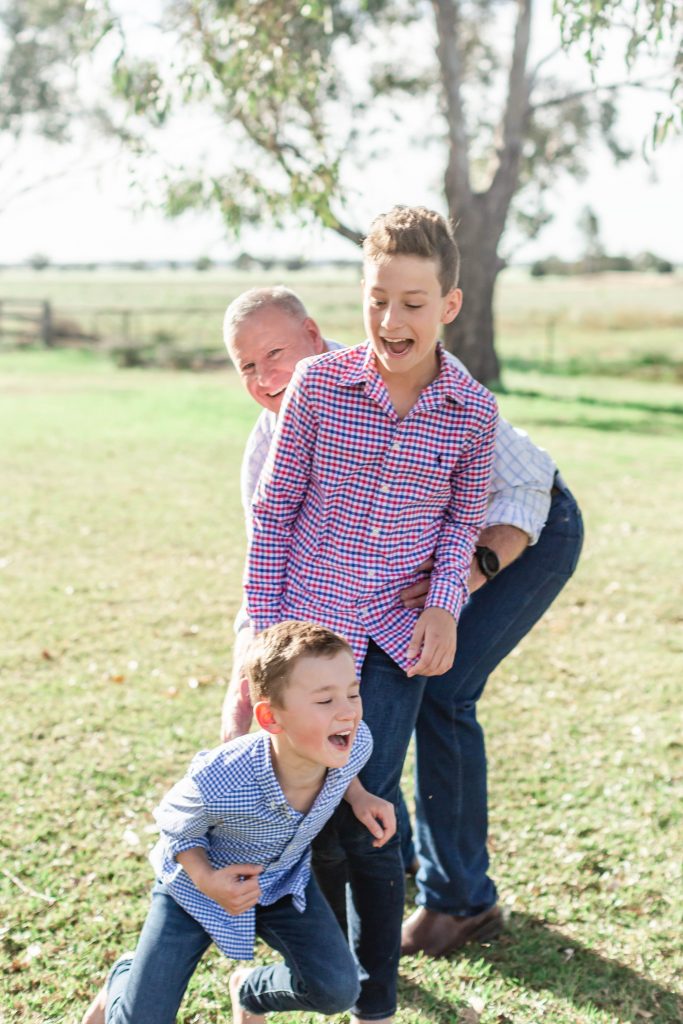 So after heading indoors and meeting the family with the littler lad announcing that I could call him ‘Chew’ and making a playful jab at big brother, Chw and I headed out to location scout. We picked one spot and he drew an X in the dirt with his toes. Soon he was telling me about the dogs. Just then a chook meandered past. “Chw,” I suddenly interjected, “are they friendly?!” I quickly explained what I had in mind. And if you thought I was thrilled with the idea, you should have seen him when we got to that part of the photoshoot. “Let me tell, let me tell!!” he begged and ran off to grab Bobby before I could hardly finish explaining. Amazingly, she turned out to be the perfect model and didn’t even leave any ‘gifts’ before daintily flying off her most unforeseen perch to date. And we got the most delightful family photo ever, don’t you think?